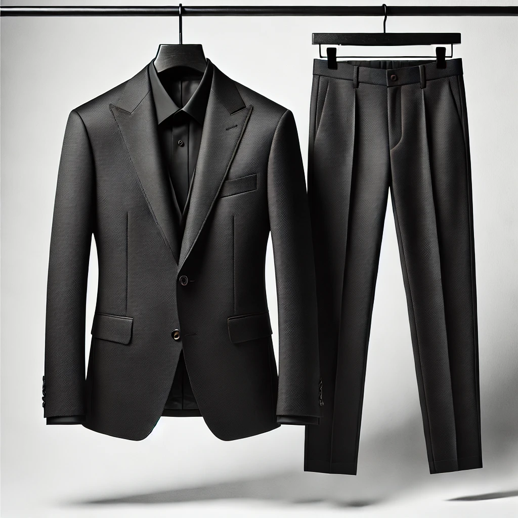 Whether you’re dressing for a business meeting, wedding, or evening event, this black suit ensures you stand out with sophistication. The sleek two-piece set includes a tailored blazer and matching trousers, both customizable to your exact measurements.