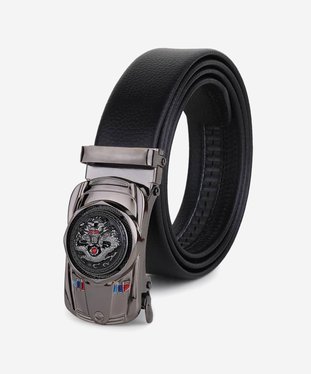 Unique line buckle series belt made of zinc alloy, polishing technology-more beautiful and wearable; Top layer cowhide leather – double-sided stitching is durable, providing 38 ratchet track adjustment.